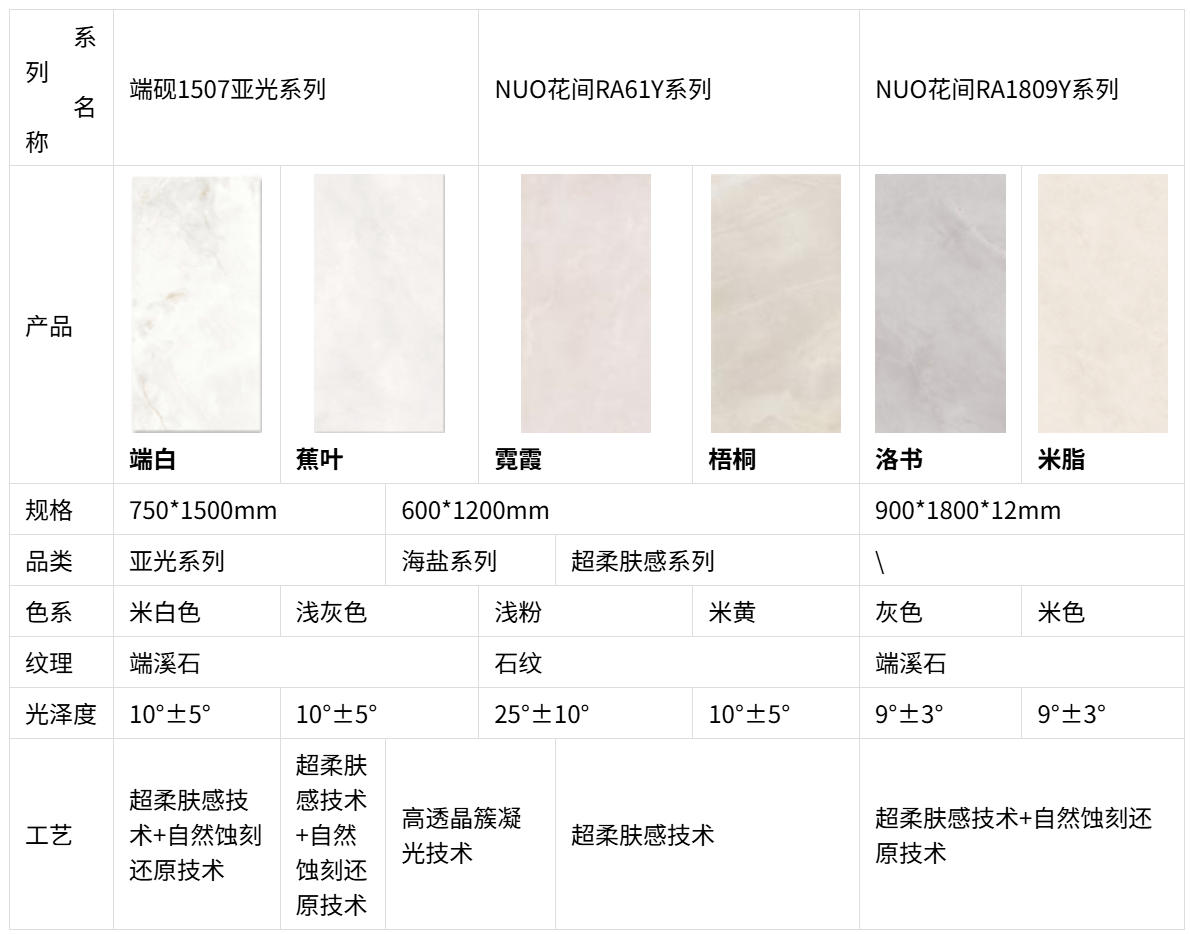 1、瓷抛砖系列:运用新型装饰瓷质面材技术、数码喷墨渗透技术及表面微抛/磨处理工艺,展现出卓越的耐磨性能、温润质感与逼真自然纹理。